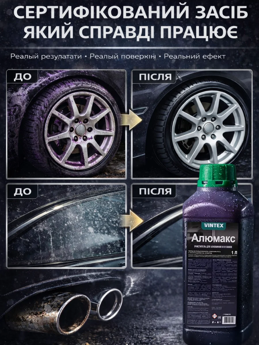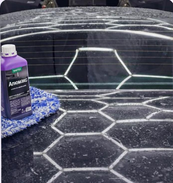 Чистий метал, відновлений блиск, рівномірна поверхня без мутності. Саме тому ALUMAX використовують у професійному детейлінгу.