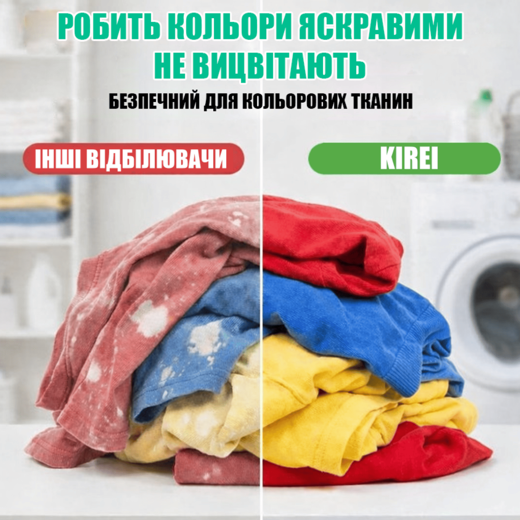 Безпечний для білого й кольорового одягу
